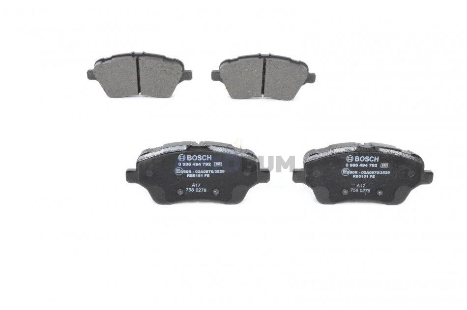 Комплект гальмівних колодок передн (з шумопоглинаючою пластиною), FORD B-MAX, FIESTA, FIESTA VI, TOURNEO COURIER B460, TRANSIT COURIER B460, TRANSIT COURIER B460/MINIVAN 1.0-1.6D 04.10- BOSCH 0 986 494 792