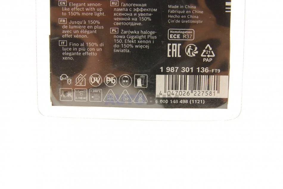 Лампа галогенна H4 12V BOSCH 1 987 301 136