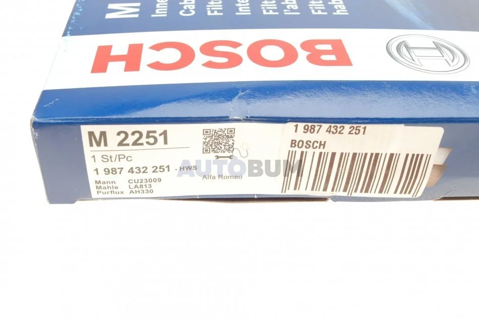 ФИЛЬТР, ВОЗДУХ ВО ВНУТРЕННОМ ПРОСТРАНСТВЕ ALFA ROMEO BOSCH 1 987 432 251