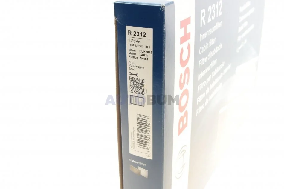 ФІЛЬТР САЛОНУ З АКТИВОВАНИМ ВУГІЛЛЯМ BOSCH 1 987 432 312