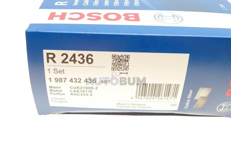ПОВІТРЯНИЙ ФІЛЬТP САЛОНУ BOSCH 1 987 432 436