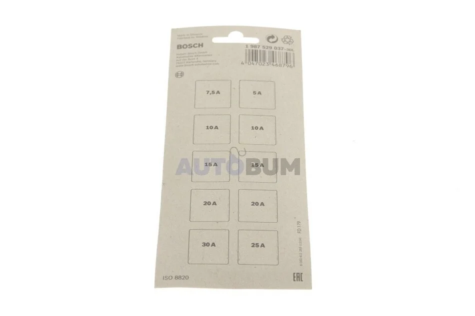 Комплект предохранителей, (5A / 7.5A / 10A / 15A / 20A / 25A / 30A), (стандарт), (10 шт.) BOSCH 1 987 529 037