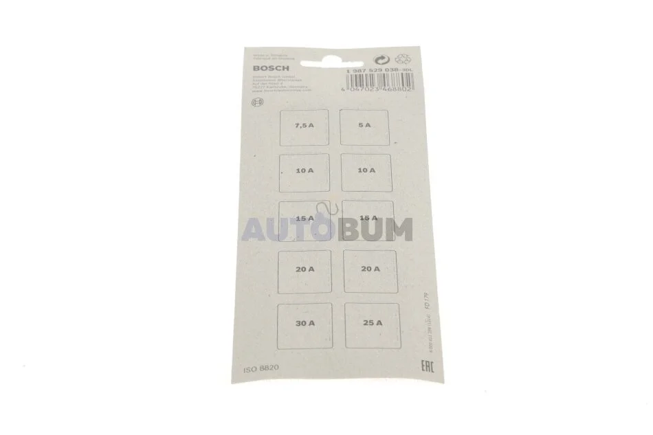 Комплект предохранителей, (5A / 7.5A / 10A / 15A / 20A / 25A / 30A), (мини), (10 шт.) BOSCH 1 987 529 038