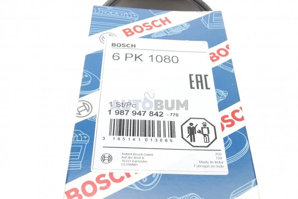 Ремень (pуч.), VW Crafter - T-5 - T-6 - Amarok, 2.0 TDI, 2011>, (+AC), (6 PK 1080) BOSCH 1 987 947 842
