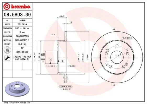 - BREMBO 08.5803.30 подходит к маркам/моделям авто: