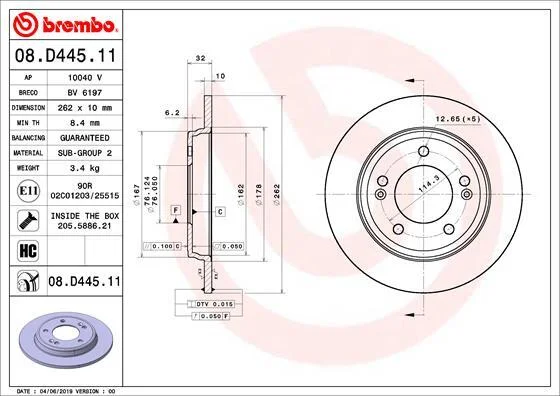 - BREMBO 08.D445.11 подходит к маркам/моделям авто: