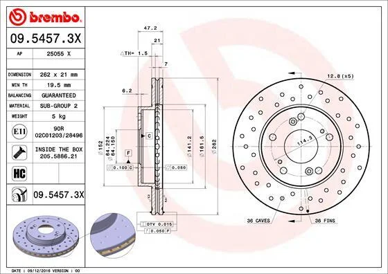 - BREMBO 09.5457.3X подходит к маркам/моделям авто: