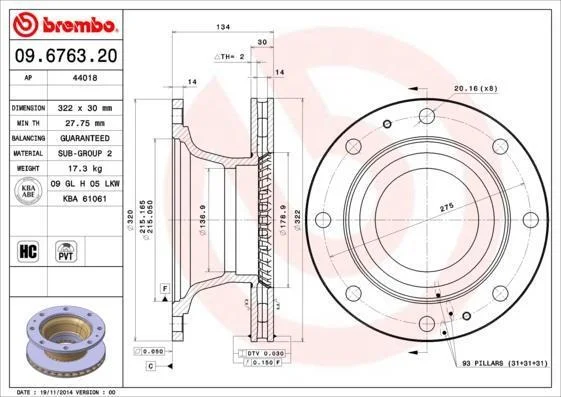 Гальмівний диск BREMBO 09.6763.20