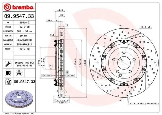 - BREMBO 09.9547.33 подходит к маркам/моделям авто: