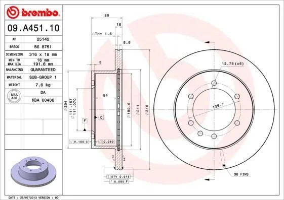 - BREMBO 09.A451.10 подходит к маркам/моделям авто: