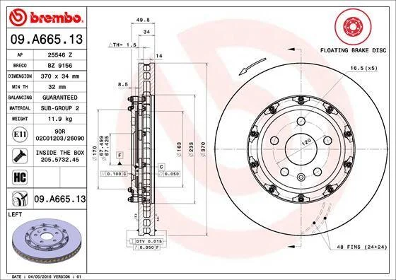 Гальмівний диск двосекційний BREMBO 09.A665.13