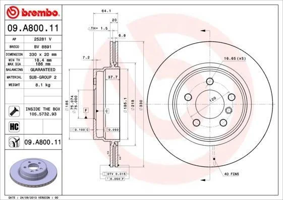 Гальмівний диск BREMBO 09.A800.11