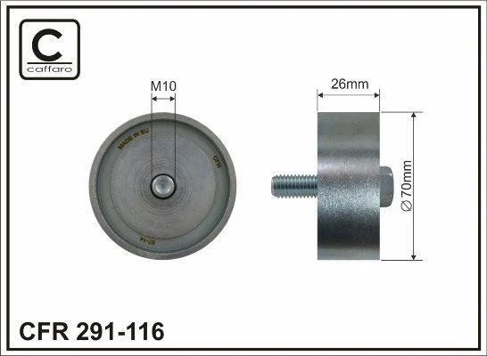 Ролик проміжний поліклинового ремня Hyundai Grandeur/IX35/Santa Fe II/III/Sonata V/VI, Kia Carens III/Cerato/II/Magentis/Optima/Sorento II/Sportage 2.0-2.4H 01.05- 70x10x26 CAFFARO 291116