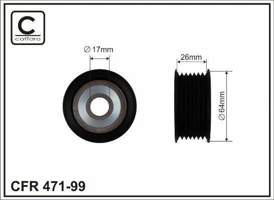 Ролик проміжний поліклинового ремня Mercedes G W463/S C215/C216/C217/W220/W221/W222/V222/X222/SL R230/R231 5.5-6.3 03.99- 64x17x26 CAFFARO 47199