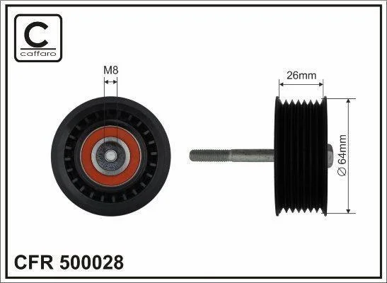 Ролик проміжний поліклинового ремня Mercedes-Benz E W211/G W463/M W163/S W220 4.0D 06.00- 64x8x26 CAFFARO 500028