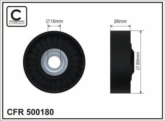 Ролик проміжний поліклинового ремня Mercedes Sprinter 3,5-T 906/3-T 906/4,6-T 906/4-T 907/910/5-T 906 3.0D 06.06- 80x16x26 CAFFARO 500180