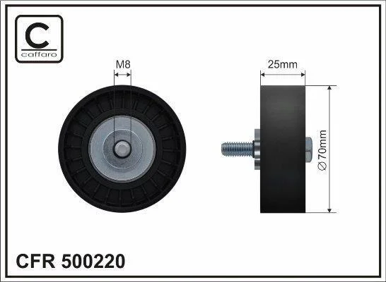 Ролик проміжний поліклинового ремня Ford C-Max II/Fiesta VI/Focus III/Galaxy/Kuga II/Mondeo IV/V/S-Max, Volvo S60 II/S80 II/V40/V60 I/V70 III 1.5/1.6/1.6ALK 04.10- 70x8x25 CAFFARO 500220