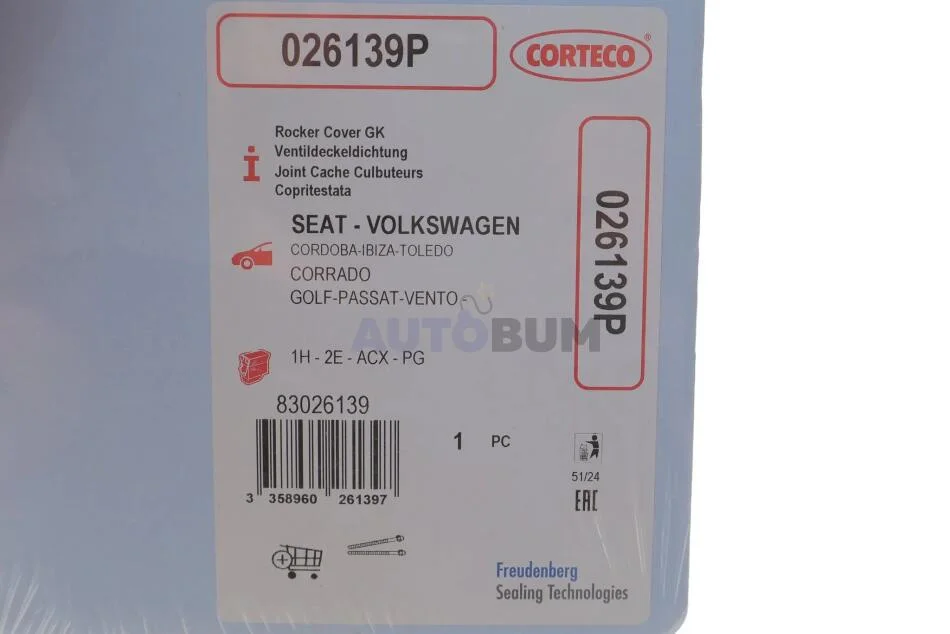 Прокладка клапанной крышки VAG 80/100/GOLF3/PASSAT 88-06 1.6-2.0 CORTECO 026139P