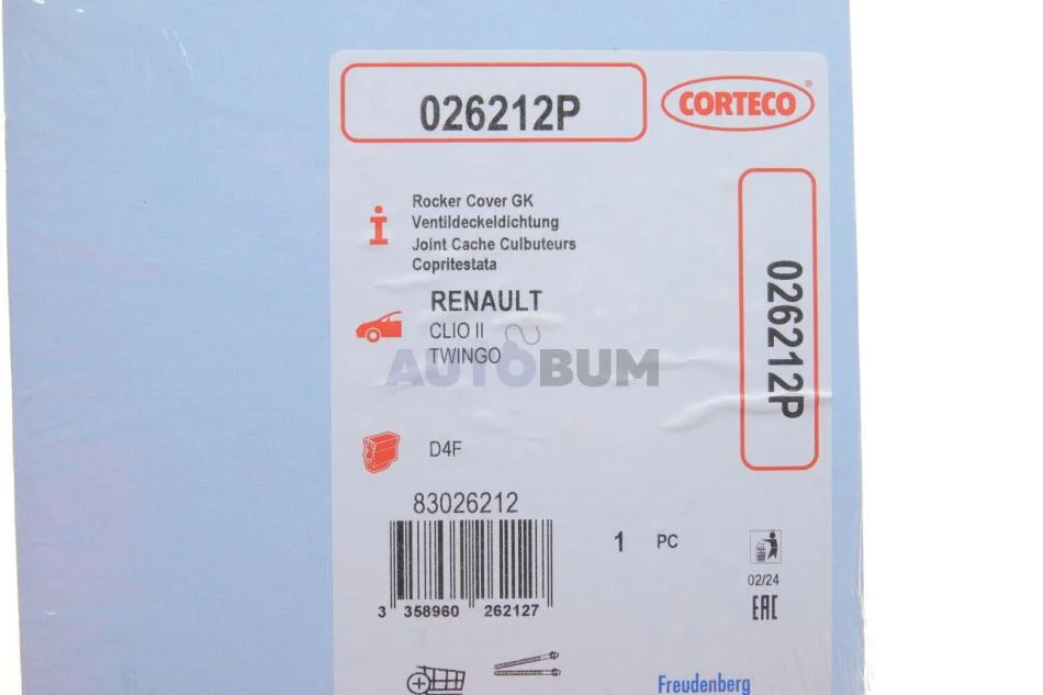 Прокладка клапанної кришки RENAULT Kangoo/Clio \'\'1.2 \'\'01-12 CORTECO 026212P