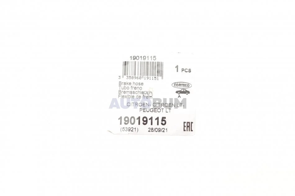 Шланг гальмівний CORTECO 19019115