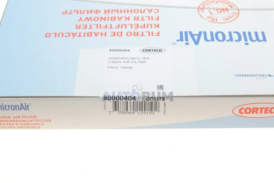 Фильтр салона с активированным углем CORTECO 80000404