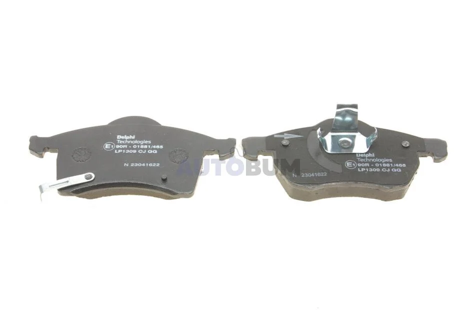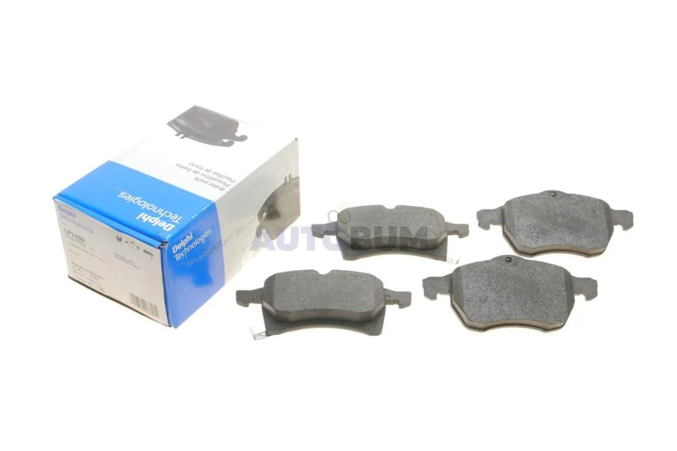 Комплект гальмівних колодок передн (з шумопоглинаючою пластиною), OPEL ASTRA F, ASTRA F CLASSIC, ASTRA F/KOMBI, ASTRA G, ASTRA G CLASSIC, ASTRA G/KOMBI, MERIVA B, ZAFIRA A 1.2-3.0D 08.94-03.17 Delphi LP1309