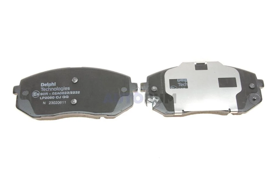 Комплект гальмівних колодок передн (без комплектуючих з шумопоглинаючою пластиною), HYUNDAI I40 I, I40 I CW, IX35, IX55, TUCSON, TUCSON/SUV KIA CARENS II, CARENS III 1.6-3.0D 09.04-09.22 Delphi LP2050
