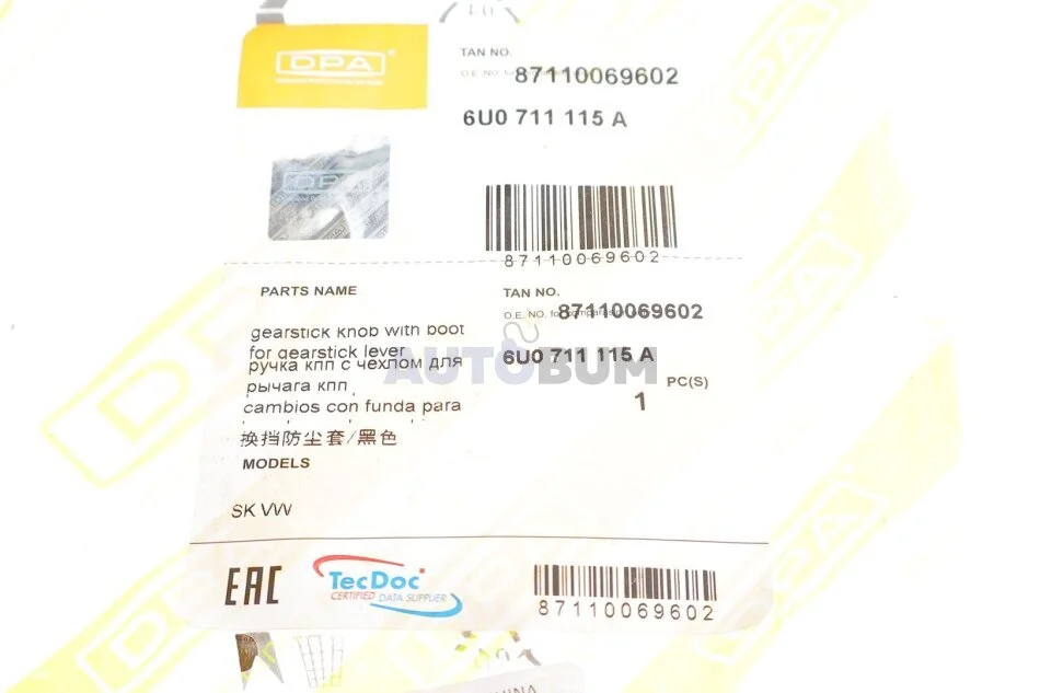 - DPA 87110069602 подходит к маркам/моделям авто: