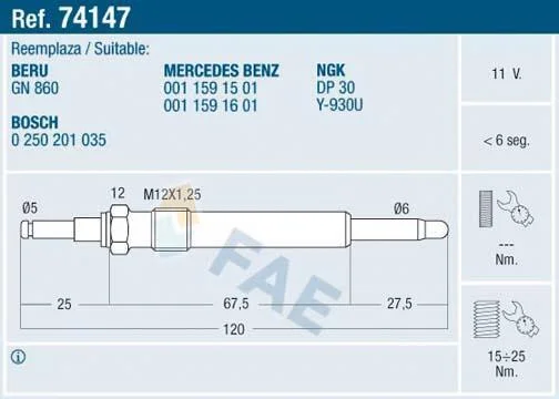 Свічка розжарювання FAE 74147