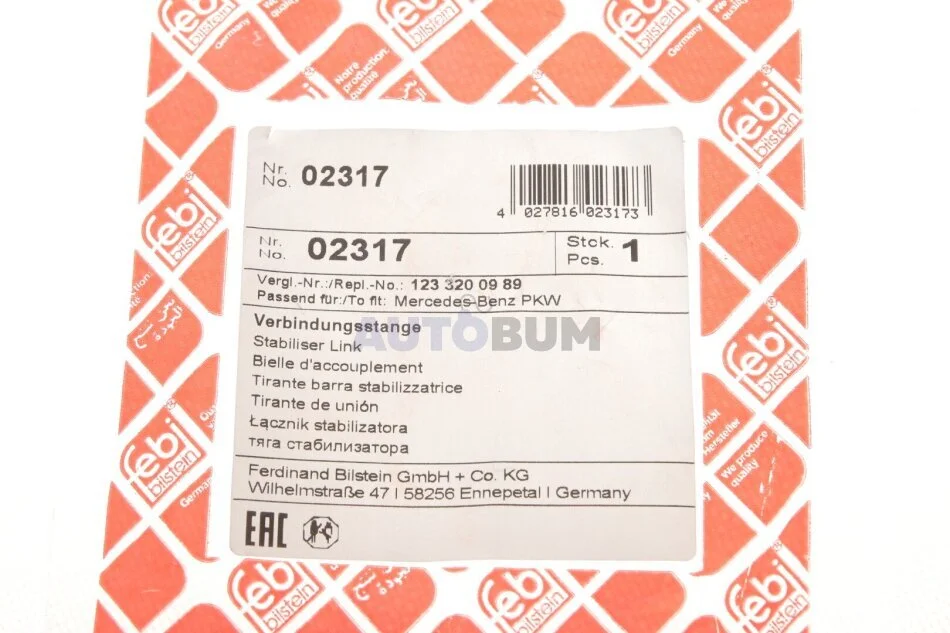 - FEBI BILSTEIN 02317 подходит к маркам/моделям авто: