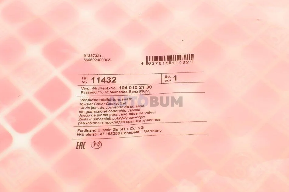 - FEBI BILSTEIN 11432 подходит к маркам/моделям авто: