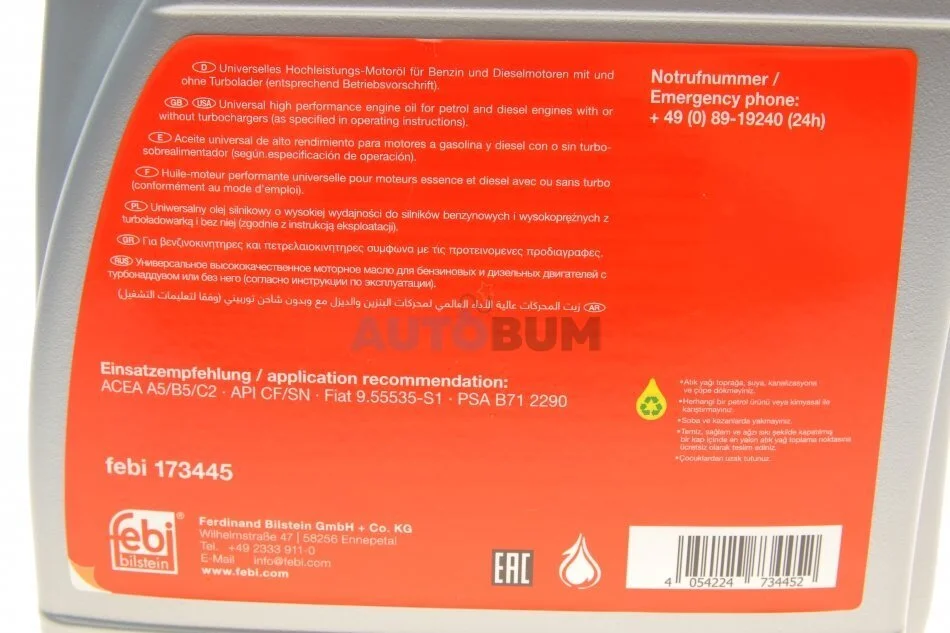 Олива моторна SAE 5W-30 HC C2 5L FEBI BILSTEIN 173445