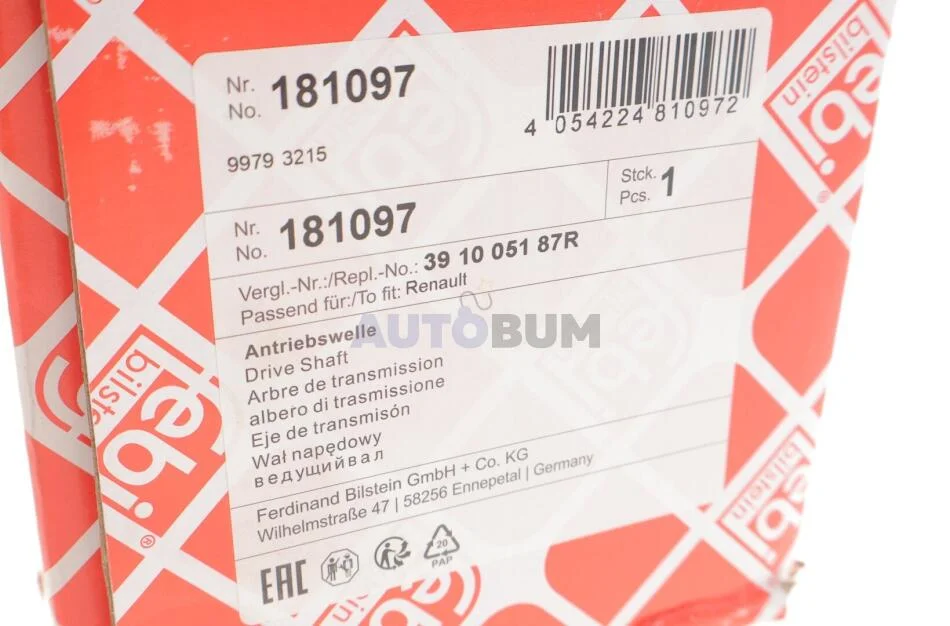 Вал приводной NISSAN NV400, OPEL MOVANO B, RENAULT MASTER III (FEBI) FEBI BILSTEIN 181097