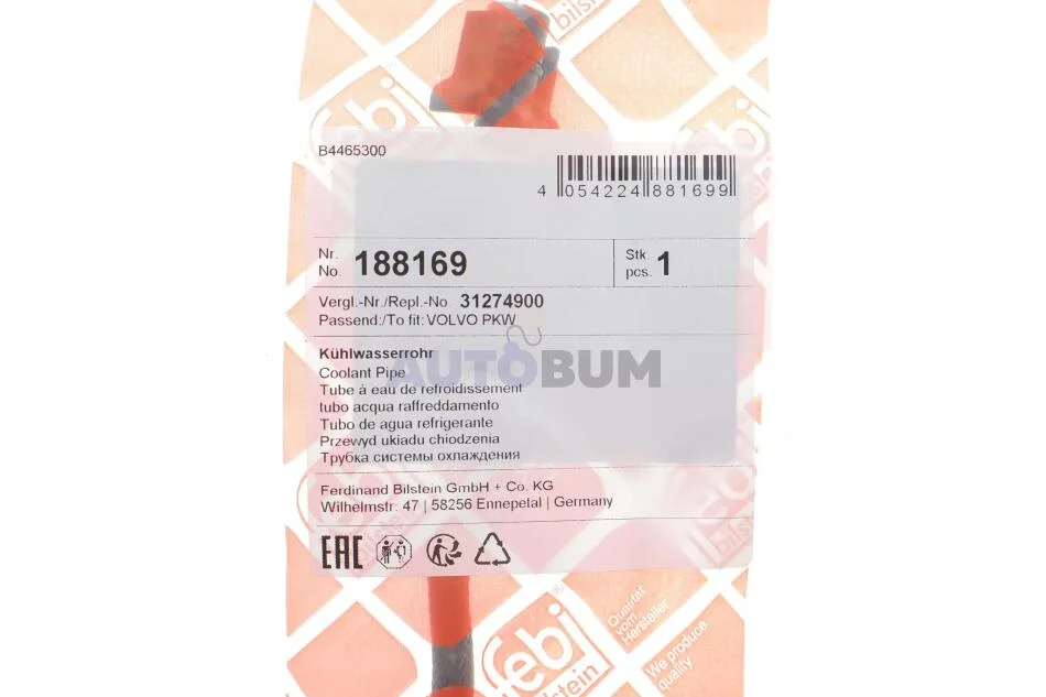 Трубка системы охлаждения Volvo S60/S80/V60/V70/XC60/XC70 06-18 FEBI BILSTEIN 188169