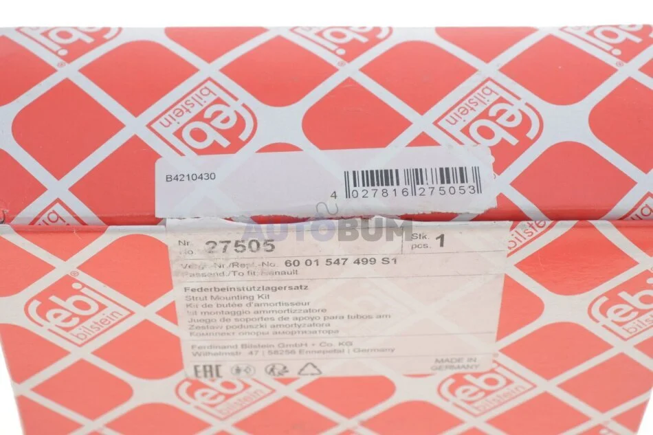 Опора амортизатора (к-т) DACIA/RENAULT Dokker/Duster/Logan/Sandero "F "04>> FEBI BILSTEIN 27505
