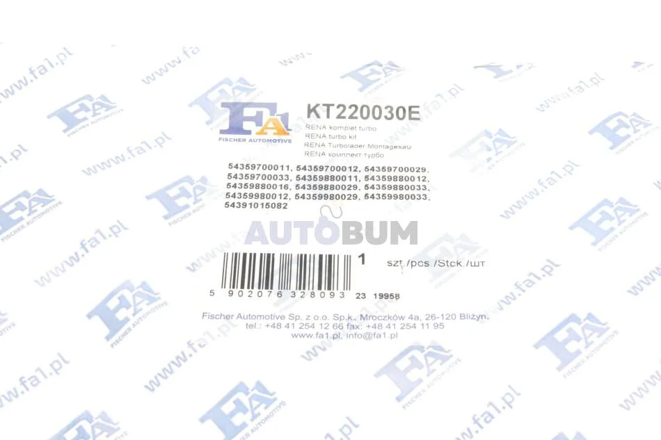 Аналоги "KT220030E Fischer Automotive One (FA1)":