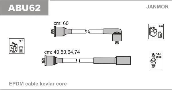 Дроти в/в (каучук Kevlar/L 60cm) VW Golf III-IV 1.6 /Seat Cordoba 1.6, Ibiza II 1.6, Toledo I 1.6 96-02 Janmor ABU62