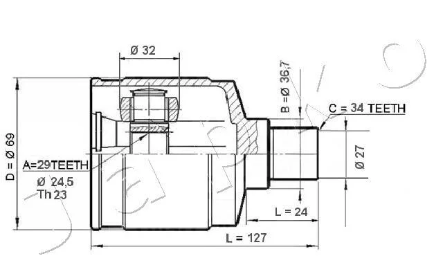 Зубчатое соединение со стороны коробки: 34