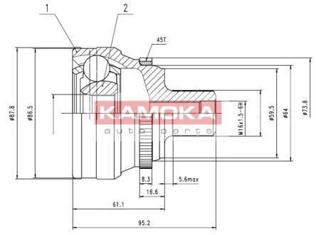 ШРУС Audi 100 (C4) 90-94,A6 (C4) 96-97 наружн. 38/30/60мм /45 ABS KAMOKA 6622