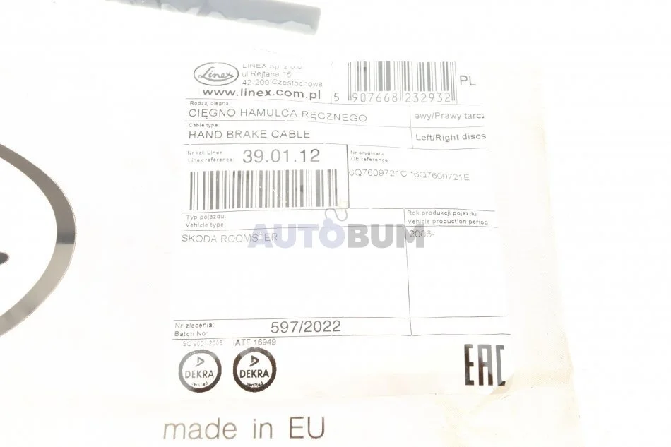 - LINEX 39.01.12 подходит к маркам/моделям авто: