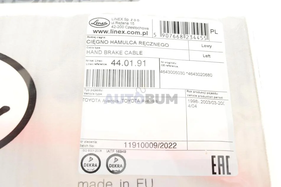 - LINEX 44.01.91 подходит к маркам/моделям авто: