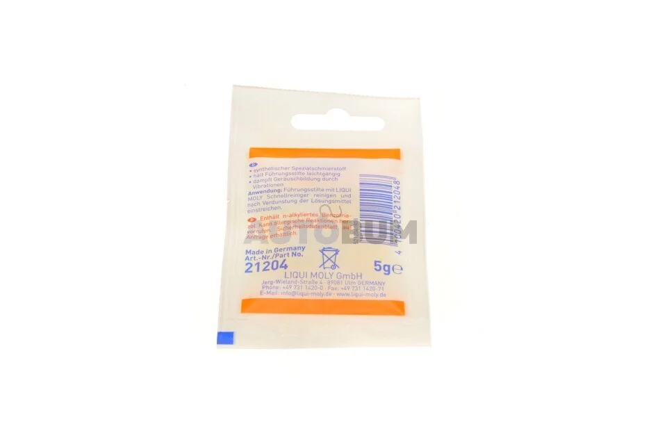 МАСТИЛО ДЛЯ НАПРЯМНИХ ШТИФТІВ ГАЛЬМІВНИХ МЕХАНІЗМІВ BREMSENFUHRUNGSSTIFTEFETT 0,005КГ LIQUI MOLY 21204