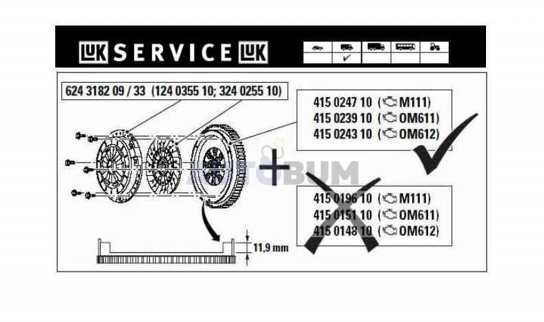 Дополнительный артикул / дополнительная информация 2: с диском сцепления, без выжимного подшипника, с комплектом болтов, с маховым колесом, необходимо специальное монтажное оборудование