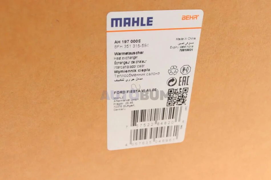 Радіатор пічки Fiesta 1.0-1.6 08- MAHLE / KNECHT AH 197 000S