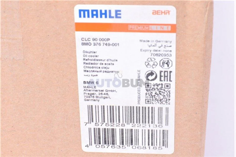 Радіатор масла BMW 5 (F10, F18) 3.0i 10-/7 (F01, F02, F03, F04) 3.0/4.4i 08- MAHLE / KNECHT CLC 90 000P