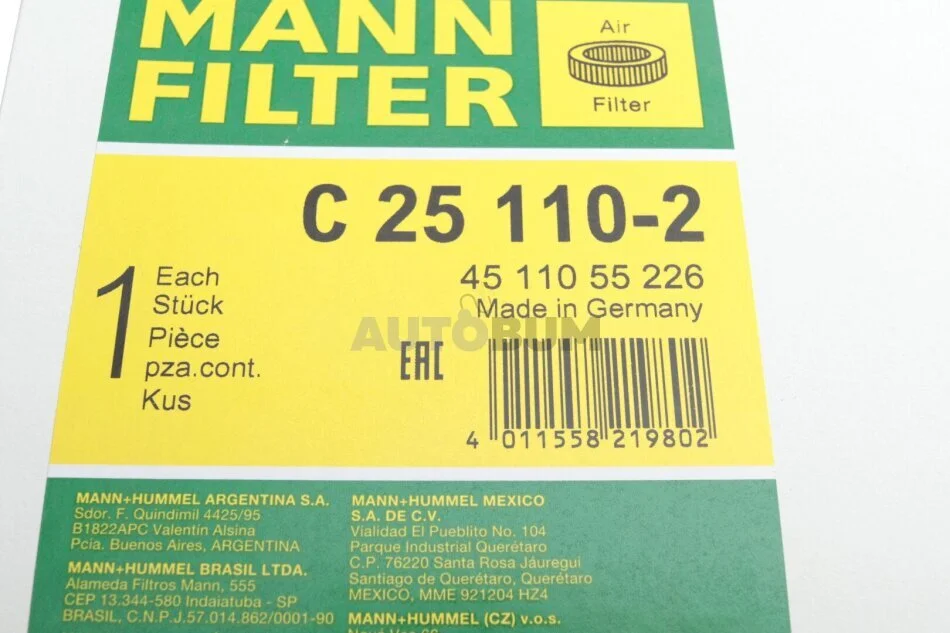 - MANN C 25 110-2 подходит к маркам/моделям авто: