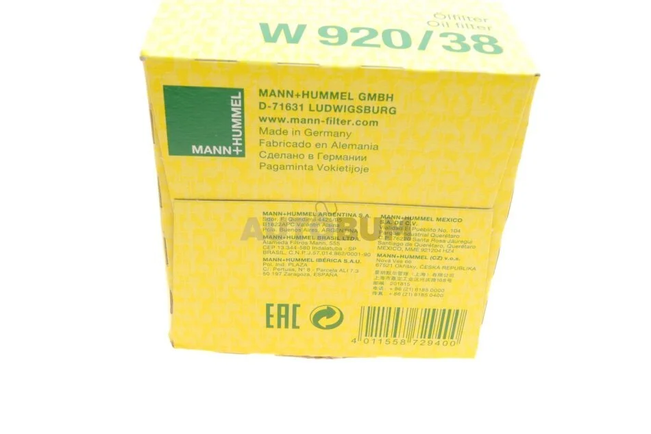 - MANN W 920/38 подходит к маркам/моделям авто: