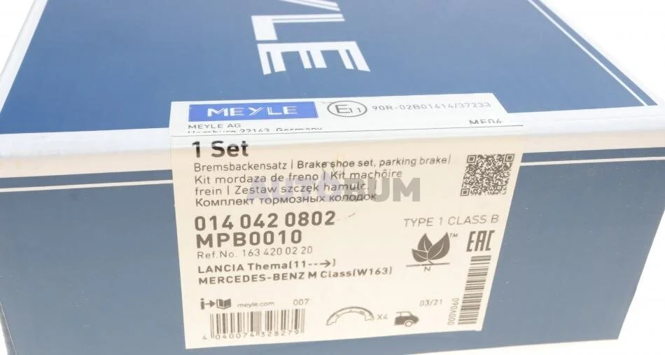 Комплект гальмівних колодок, стояночного гальма MEYLE 014 042 0802