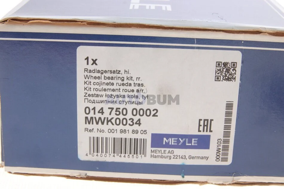 Підшипник маточини (комплект) MEYLE 014 750 0002