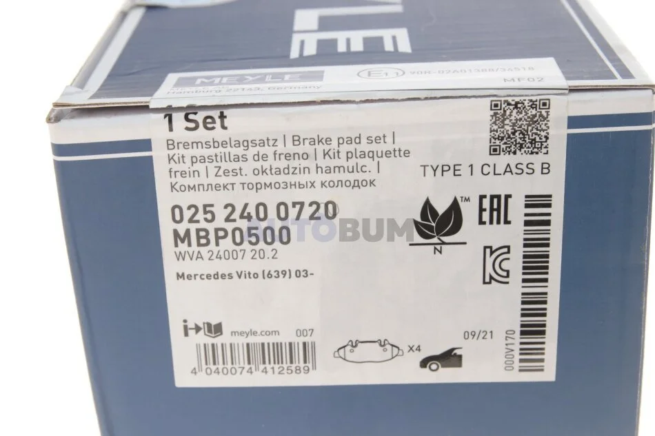 Комплект гальмівних колодок MEYLE 025 240 0720